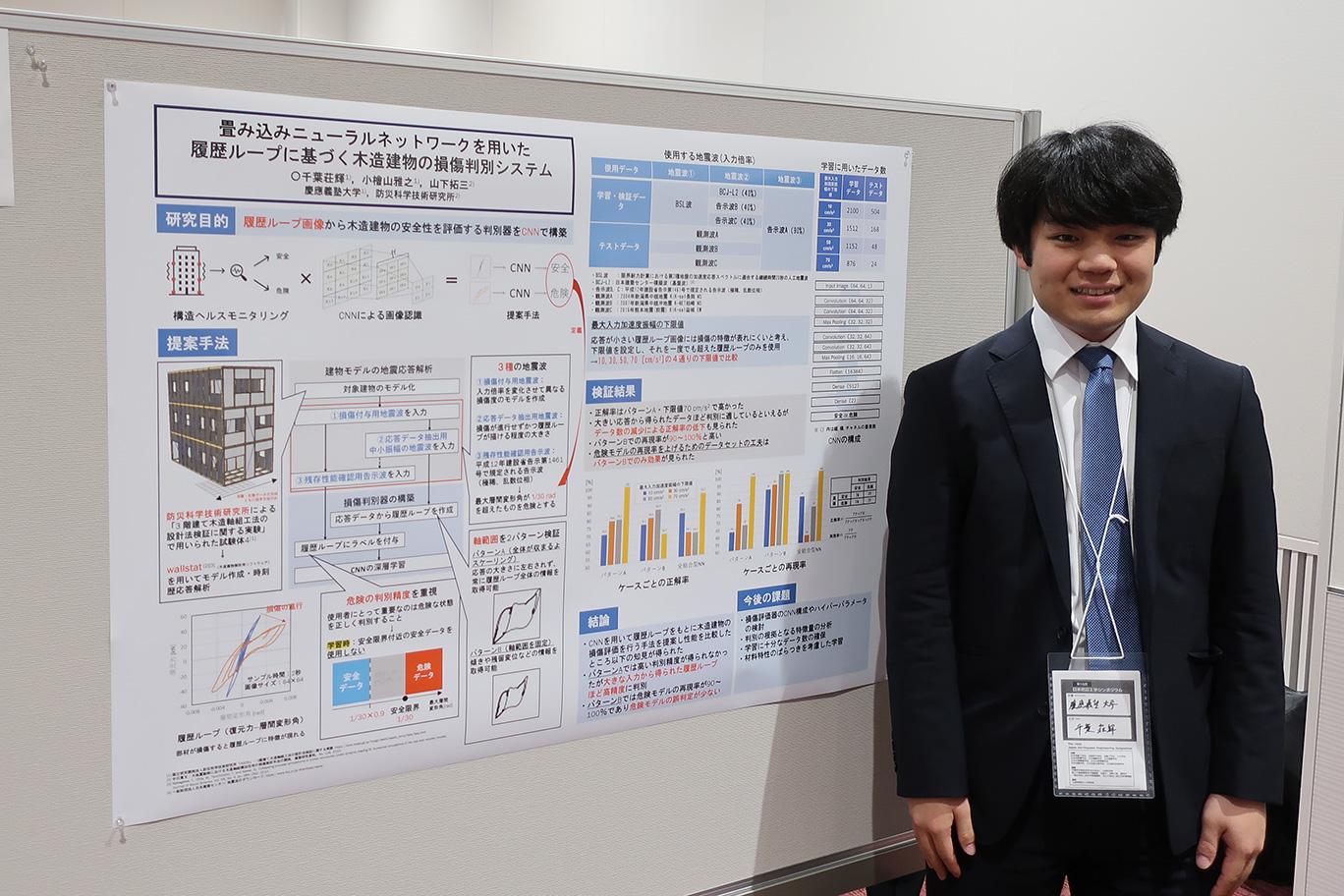 M1千葉荘輝君「畳み込みニューラルネットワークを用いた履歴ループに基づく木造建物の損傷判別システム」(2023年11月24日発表)